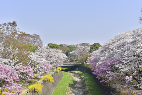川沿いでは早咲きの河津桜から遅咲きのサトザクラなどが順次咲いていくので、時期によって異なる桜を楽しみながら散策するのがおすすめです。