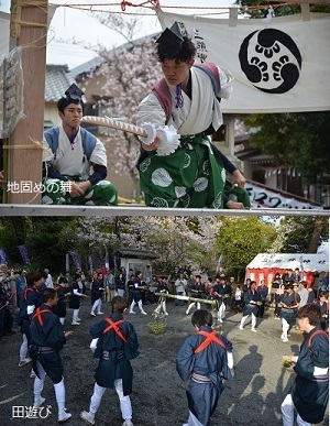 15:00~16:00 地固め舞(県指定無形民俗文化財)・田遊び奉納