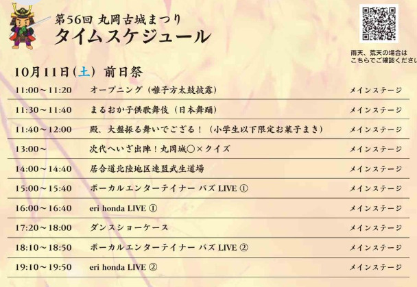 56回目となる今年の丸岡古城まつり2025は、10月11日(土)、12日(日)に開催されます。
