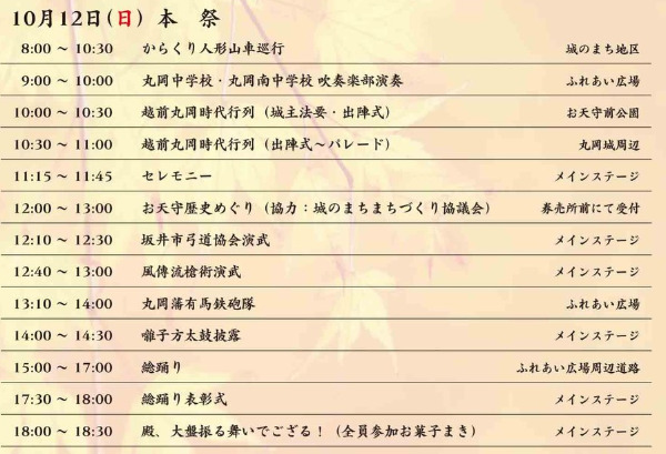 丸岡古城まつり2025の開催日程・時間(スケジュール)や場所は?