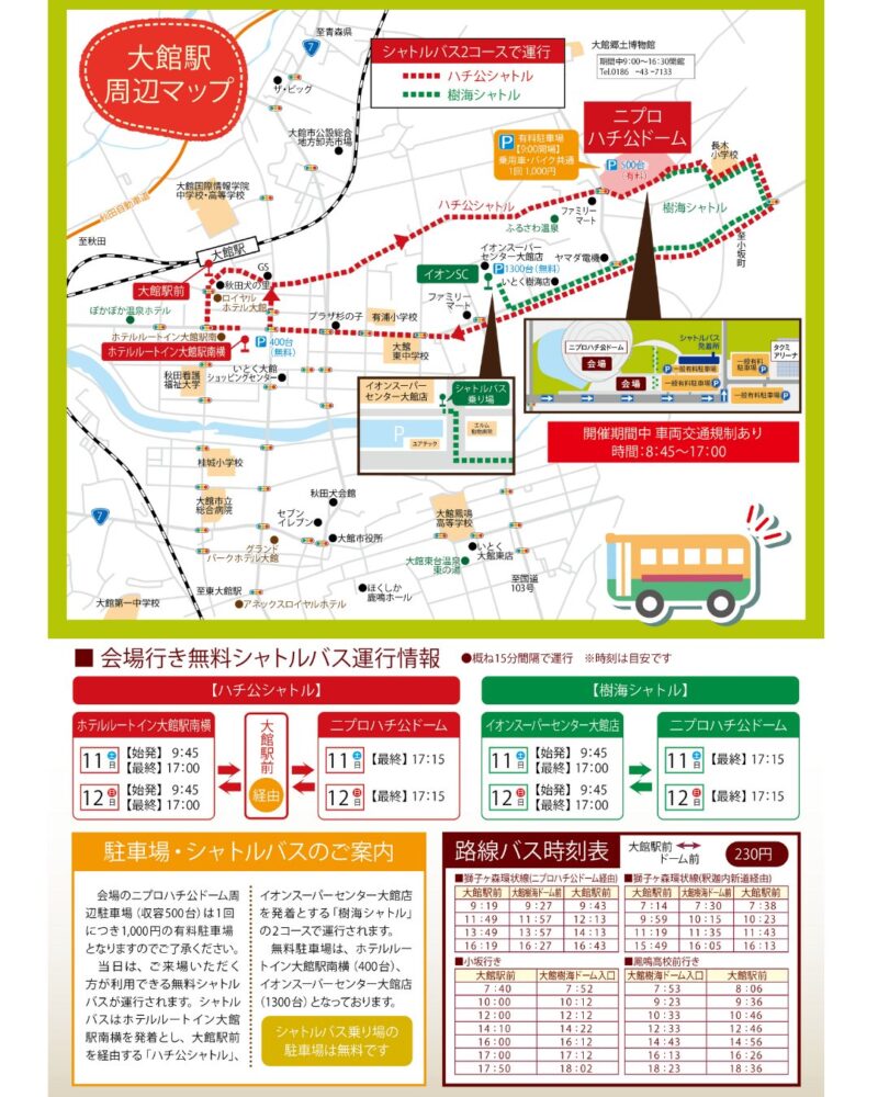 本場大館きりたんぽまつり2025のシャトルバスは図の通り運行します。