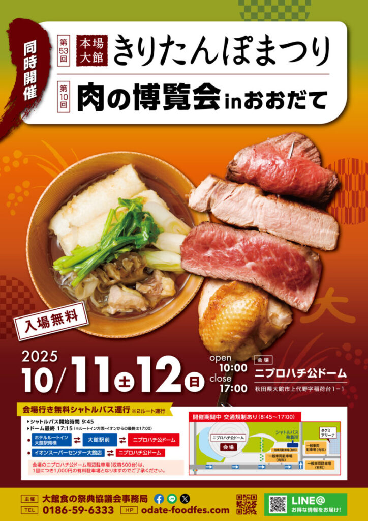 本場大館(おおだて)きりたんぽまつり2025は2025年10月11日(土)・12日 (日)にニプロハチ公ドームで開催されます!
