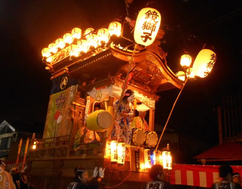 夜にはきらびやかな山車に灯りがともり、幽玄な雰囲気を醸し出した山車の数々の競演が観られる夜の曳っかわせは、観るものを素晴らしく魅了してくれます。