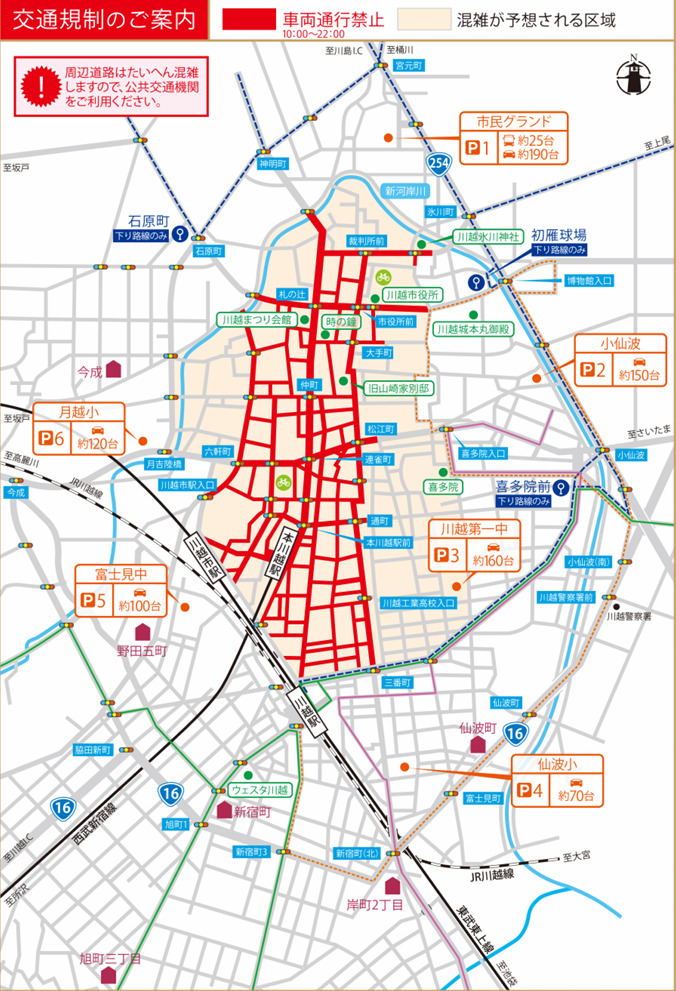 川越祭り2025のアクセスや駐車場、交通規制については以下のとおりになります。