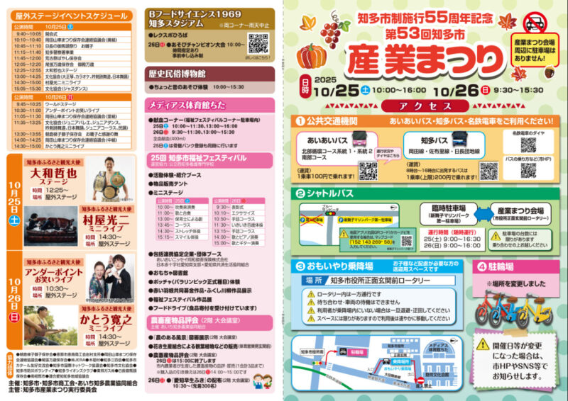 まとめ:知多市産業まつり2025の日程・時間やゲストは?屋台やアクセスや駐車場は?
