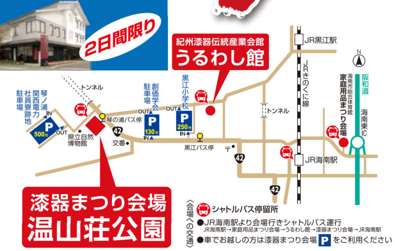 紀州漆器まつり2025のアクセスは、下記の通りです。