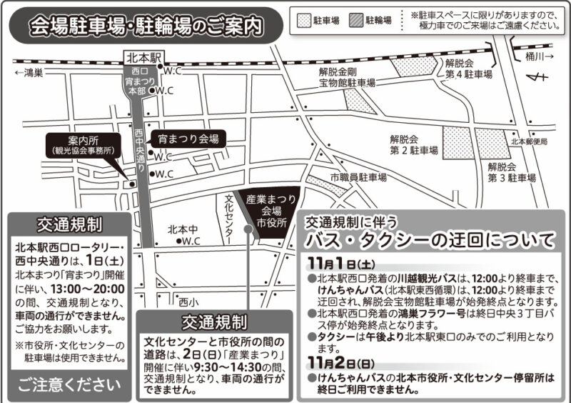 北本まつり2025のアクセスや駐車場情報、交通規制情報を調べました。