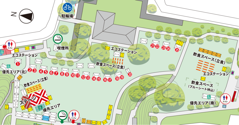 北・南・東の3か所に分かれており、東側は一部まつり会場として使用される予定です