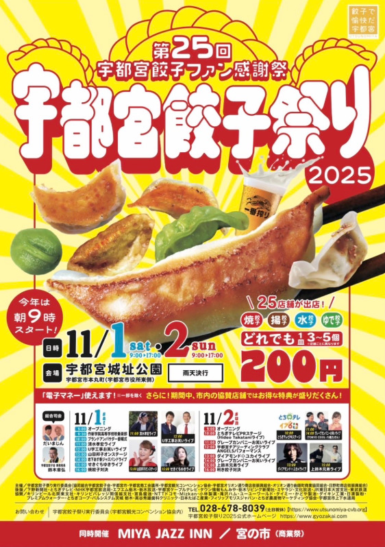 今年で25回目を迎える「宇都宮餃子祭り2025」では、宇都宮餃子会加盟の人気店が勢ぞろい!