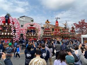 お囃子にのり、華やかに曳き回される光景は圧巻です。