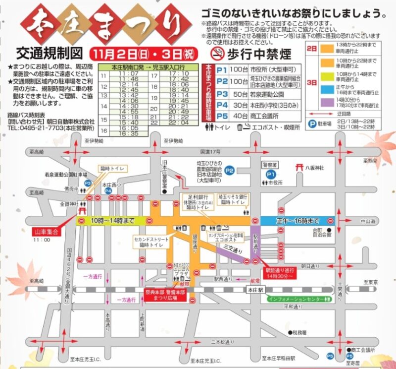 本庄市街地周辺で交通規制がありますのでご注意ください。