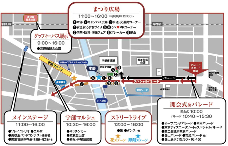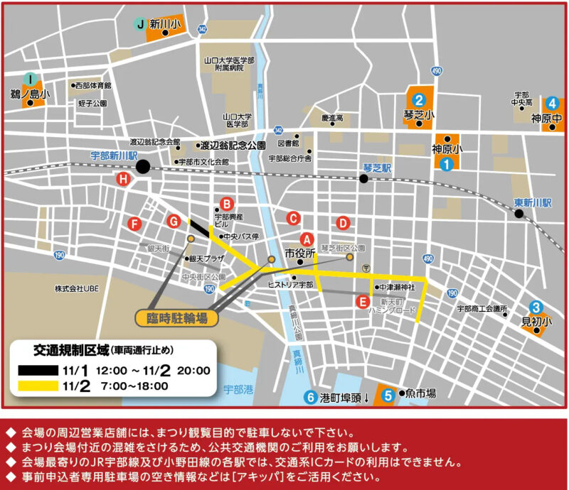 宇部まつり2025のアクセスについては以下のとおりになります。