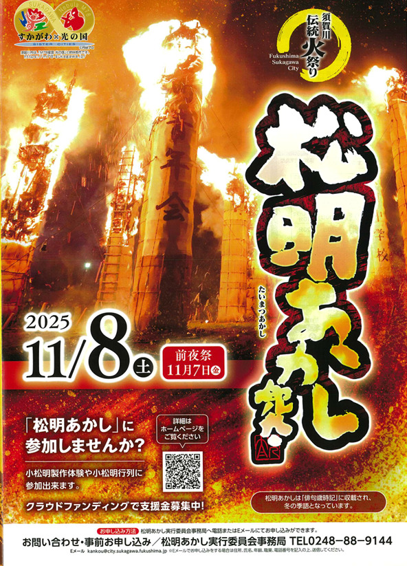 2025年の「松明あかし」は、須賀川市で受け継がれてきた壮大な火祭りとして、今年も多くの人々の祈りと熱気に包まれます。