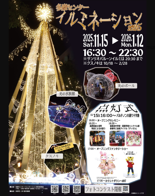 多摩センターイルミネーション2025の点灯式の日程や時間は?内容は?