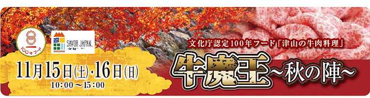 15日・16日には津山の牛肉料理「牛魔王~秋の陣~」が開催されます。