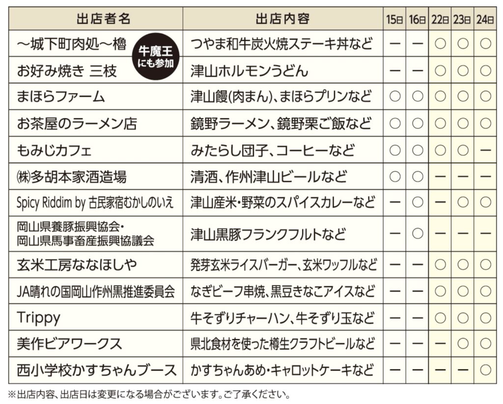 津山城もみじまつり2025のご当地グルメフェスティバル等屋台・キッチンカーの出店は?