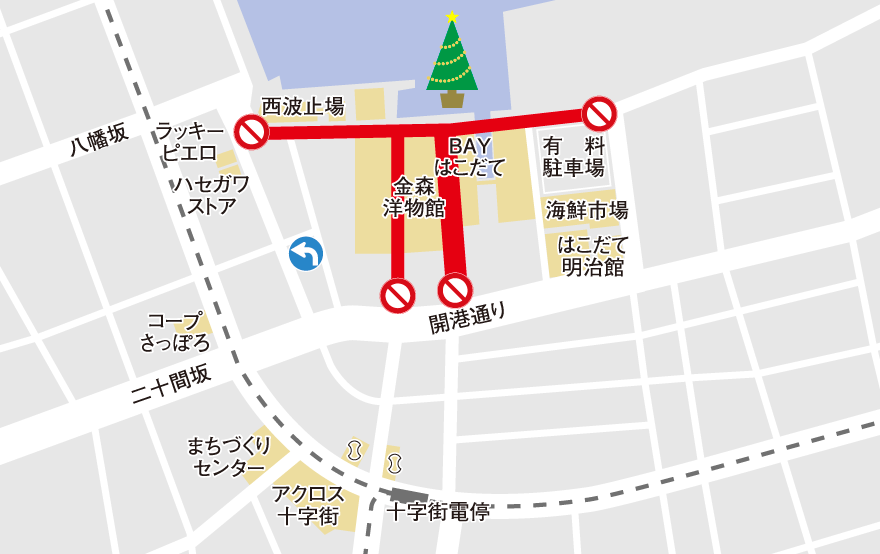 函館クリスマスファンタジー2025の交通規制や駐車場は?