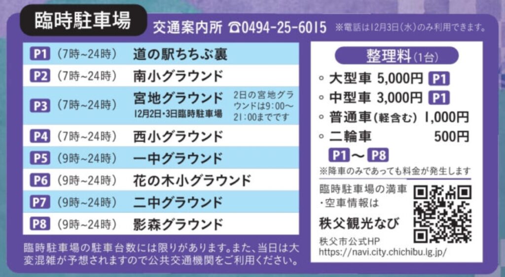 秩父夜祭花火大会2025の駐車場は?
