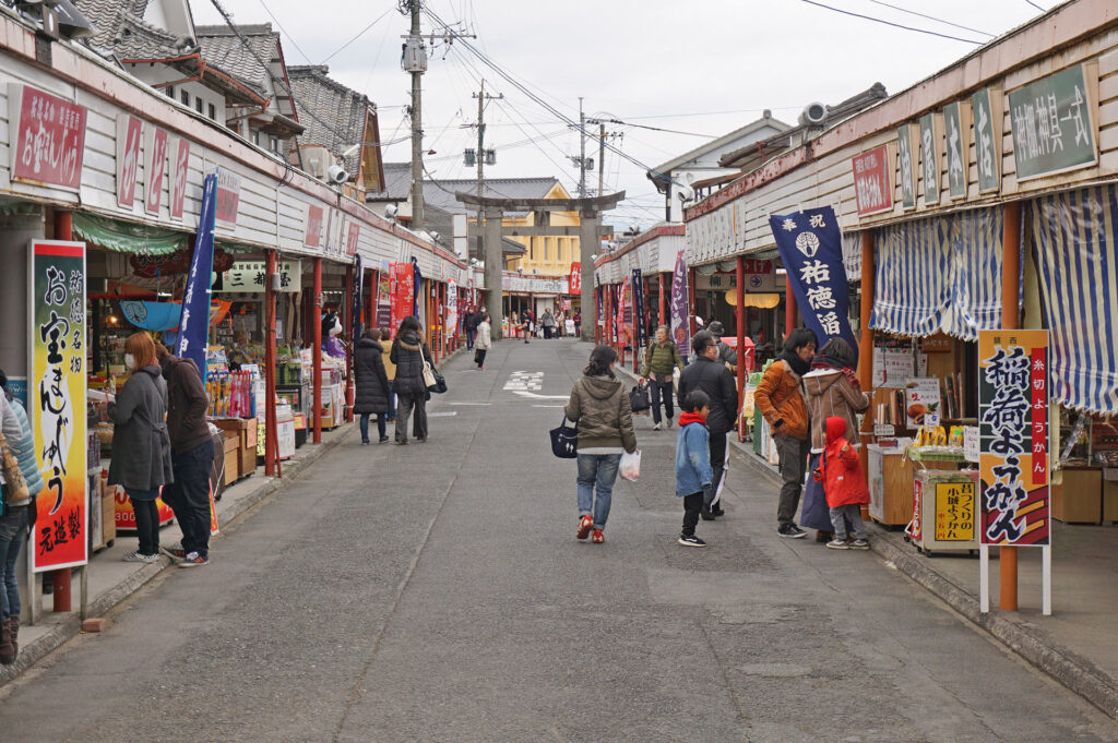 また門前商店街では名物の「稲荷羊羹」、手焼きの「祐徳せんべい」などのおみやげ物屋さんが多いので、買い物を楽しみつつ参拝もできます。