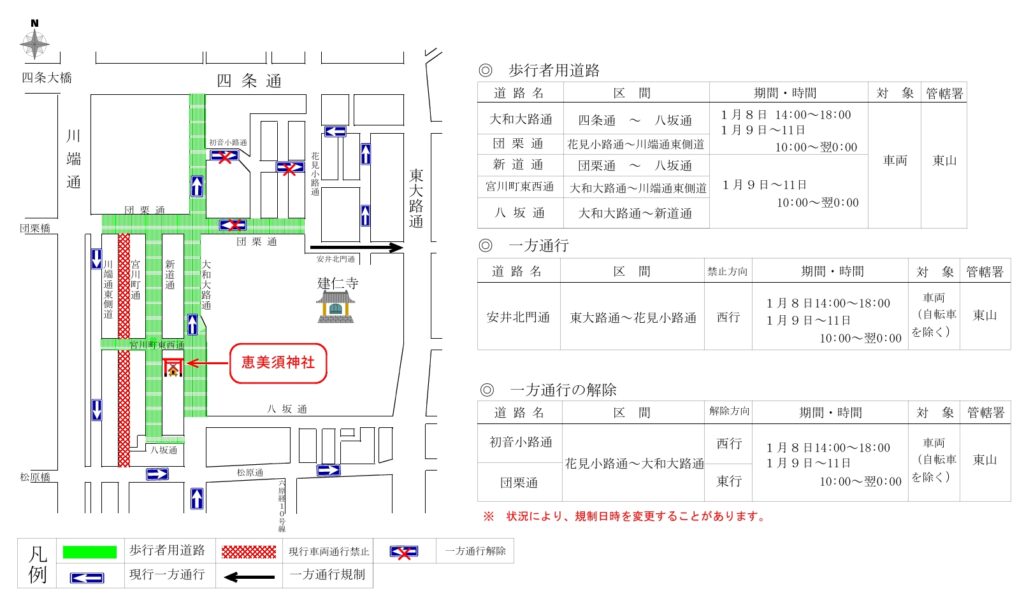 京都えびす神社の十日えびす大祭(初えびす)2026では図の通り交通規制が実施されます。