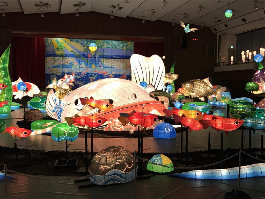 「宵の美術館」がテーマになって、温泉街の至る場所で500基から600基の灯篭やランタンが灯されていきます。