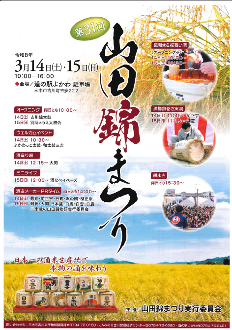 「第31回 山田錦まつり」は、2026年3月14日(土)・15日(日)の2日間開催されます!