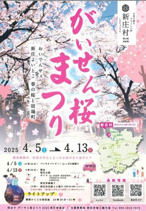 岡山県新庄村のがいせん桜について、2026年見頃時期や開花状況、がいせん桜まつり2026の日程、ライトアップや屋台・露店の出店、アクセスや駐車場等気になりますよね。ここでは、2026年見頃時期や開花状況、がいせん桜まつり2026の日程、ライトアップや屋台・露店の出店、アクセスや駐車場、魅力や見どころについて紹介します。