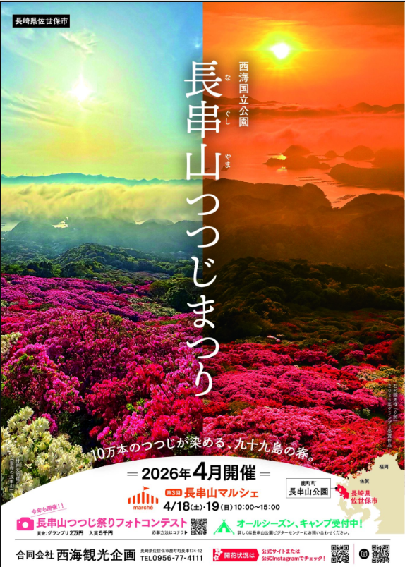 ぜひ参考にしていただき、久留米つつじや平戸つつじの鮮烈な桃色と北九十九島のオーシャンブルーとのコントラストをお楽しみください!
