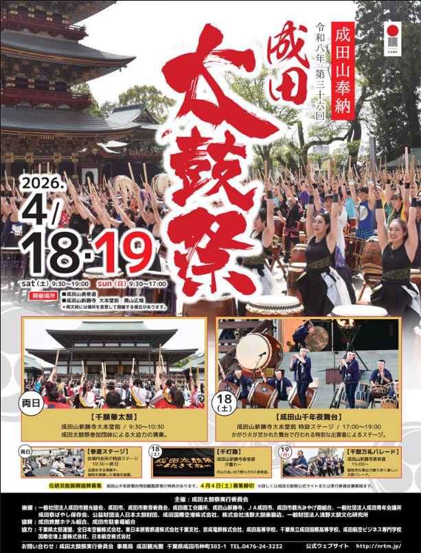 4月18日(土)・19日(日)の2日間、第36回成田太鼓祭が開催されます。