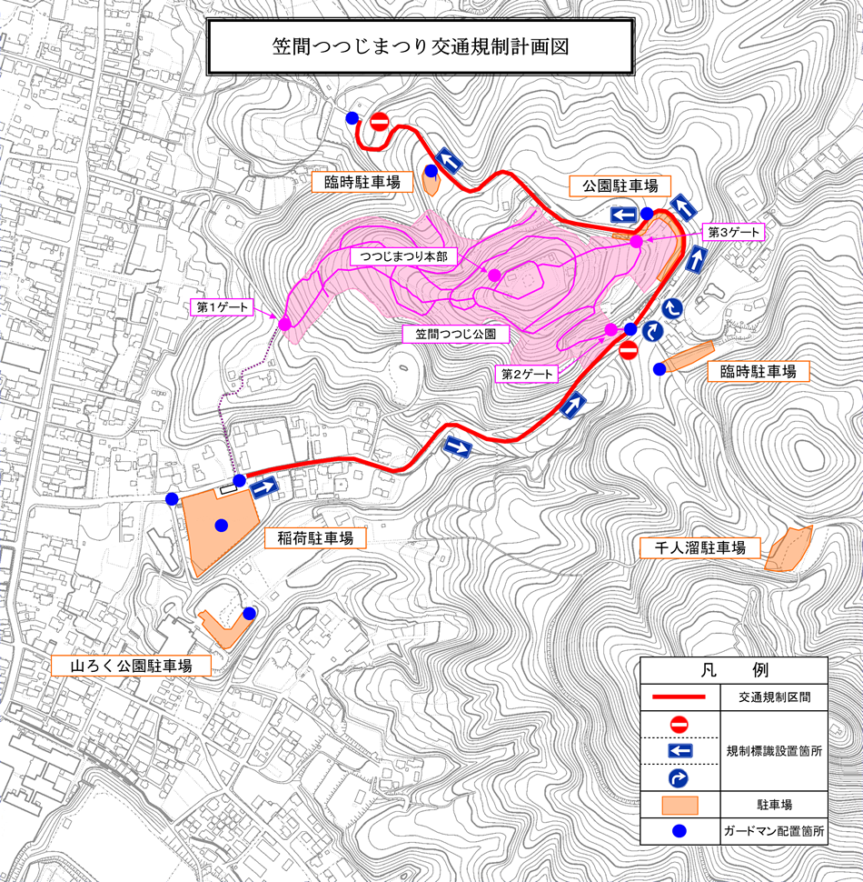 なお、駐車場周辺では図のような交通規制が29日(水曜日・祝日)から5月5日(火曜日・祝日)の9:00~16:00に実施されますので、ご注意ください。