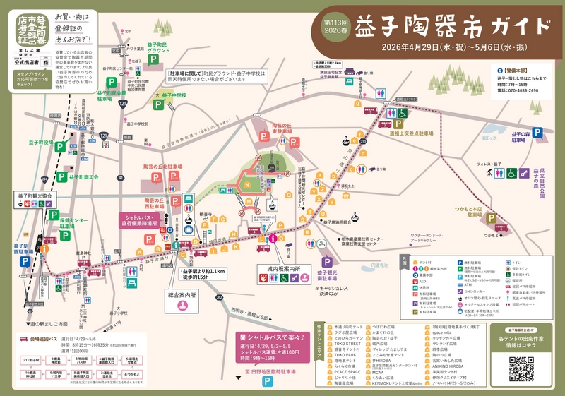・田野地区臨時駐車場と陶器市会場を結ぶシャトルバスが運行(4月27日~4月29日)します。